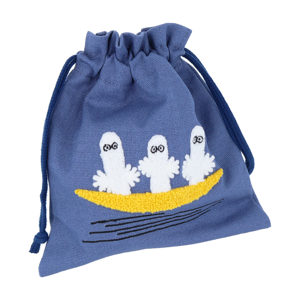 船で遊ぶ「ニョロニョロ」の巾着は、濃いめのブルーの生地を使用。