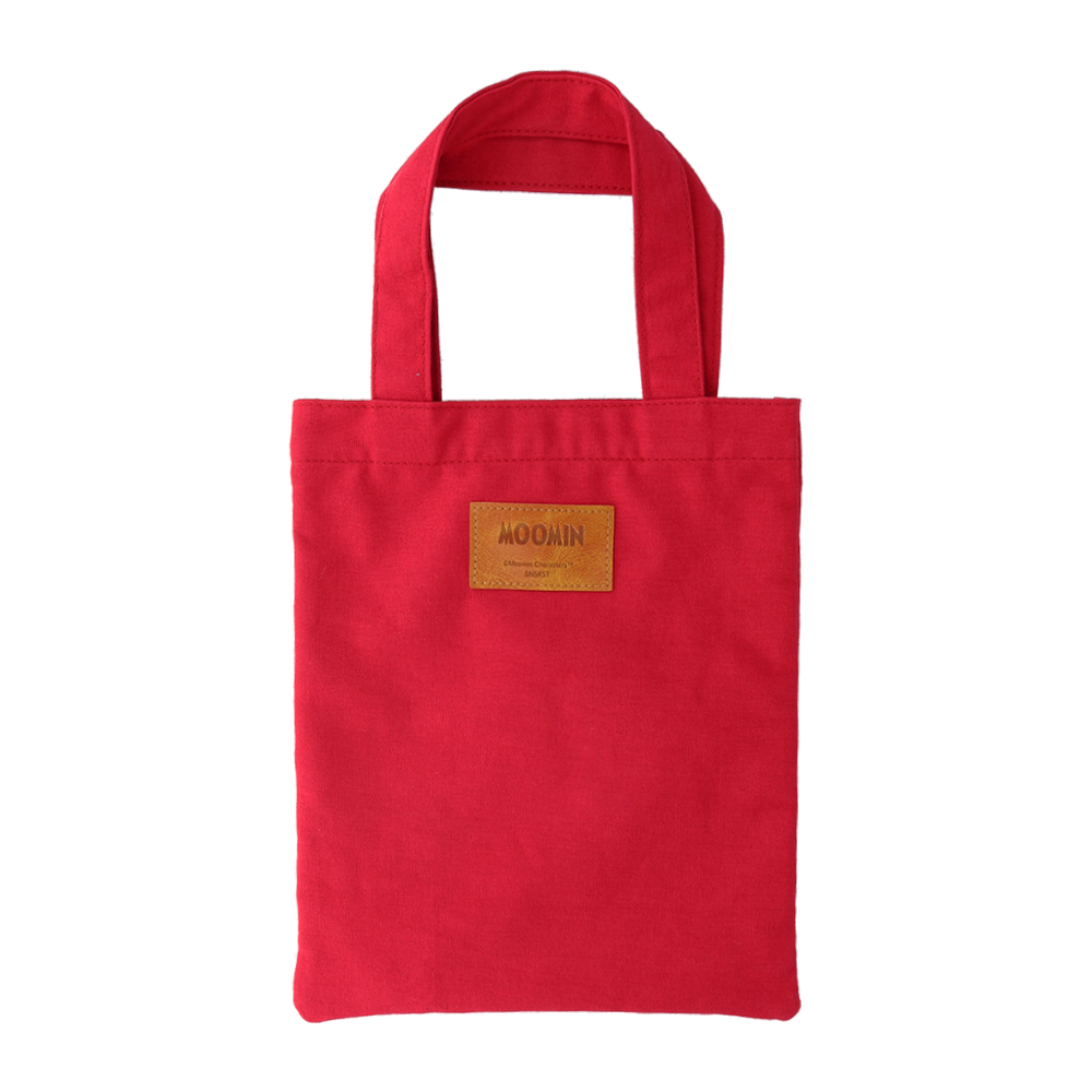 赤いミニトートに「リトルミイ」と「ニョロニョロ」をあしらったデザイン。