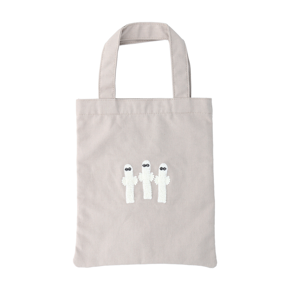 ナチュラルな雰囲気のカラーに「ニョロニョロ」の姿をあしらったミニトートバッグ。
