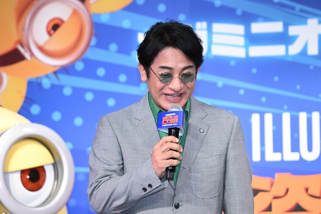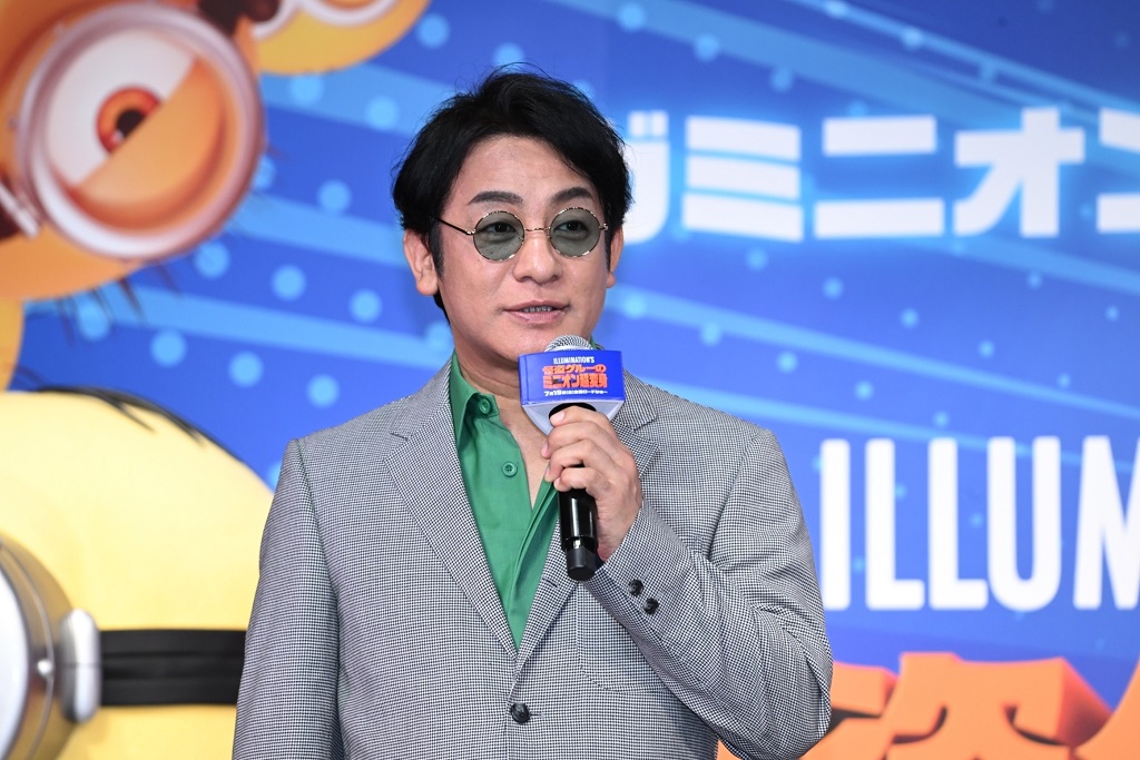 グルーの高校の同級生であり、最強のライバルマキシム役でシリーズに初参戦する片岡愛之助さんはマキシムと同じ丸いサングラスを着用して登壇。