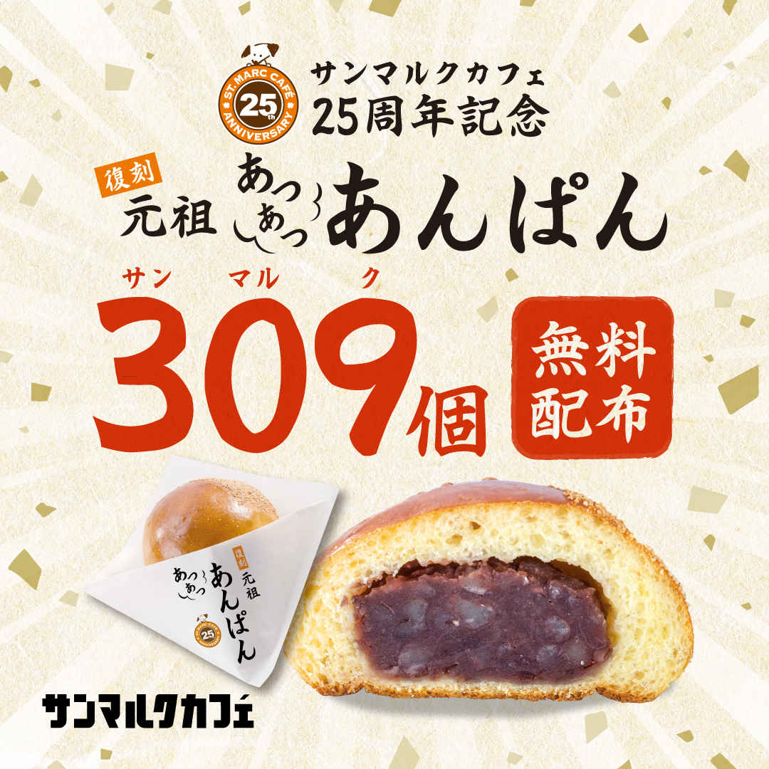 サンマルクにちなんで、各日・各店舗309個の「元祖あつあつ十勝あんぱん」が無料配布されます☆