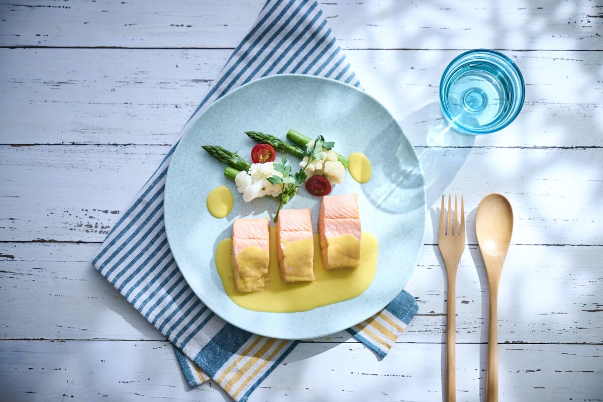 ハワイ語でパッションフルーツを意味する“リリコイ”のバターソースとともに楽しむローストサーモン、