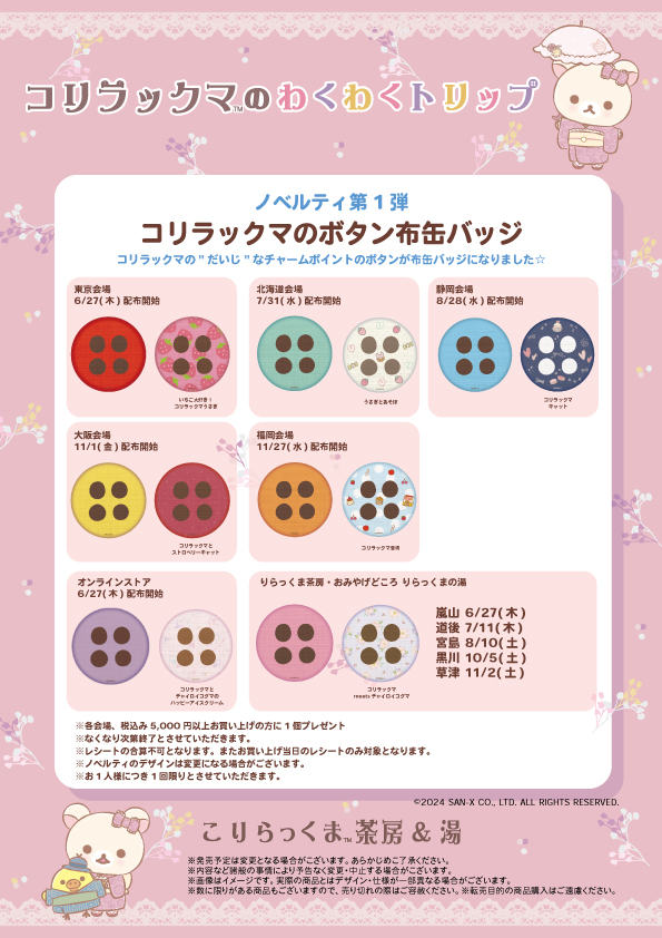 ※コリラックマのわくわくトリップ北海道、静岡、大阪、福岡会場での発売日は、各会期初日の発売となります