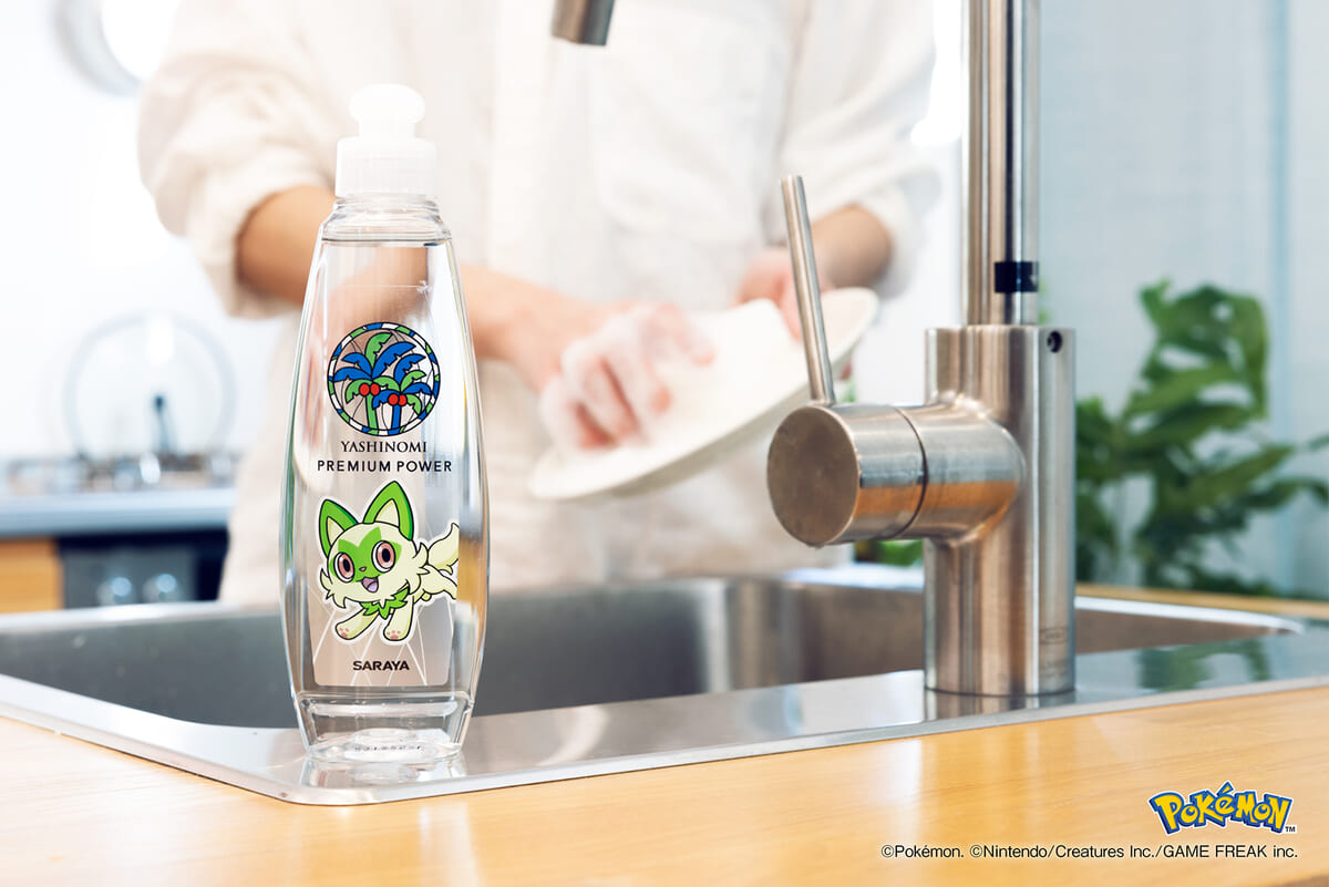 やさしさそのままに洗浄力を進化させて、少量でも油汚れに強い「ヤシノミ洗剤 プレミアムパワー」にはニャオハの姿が!