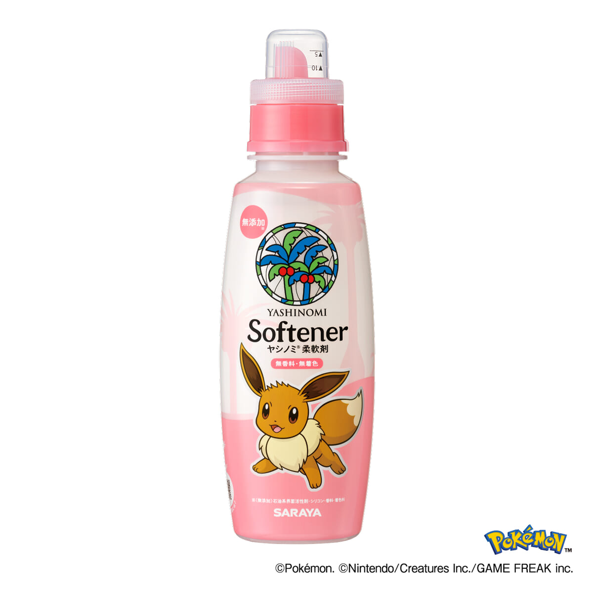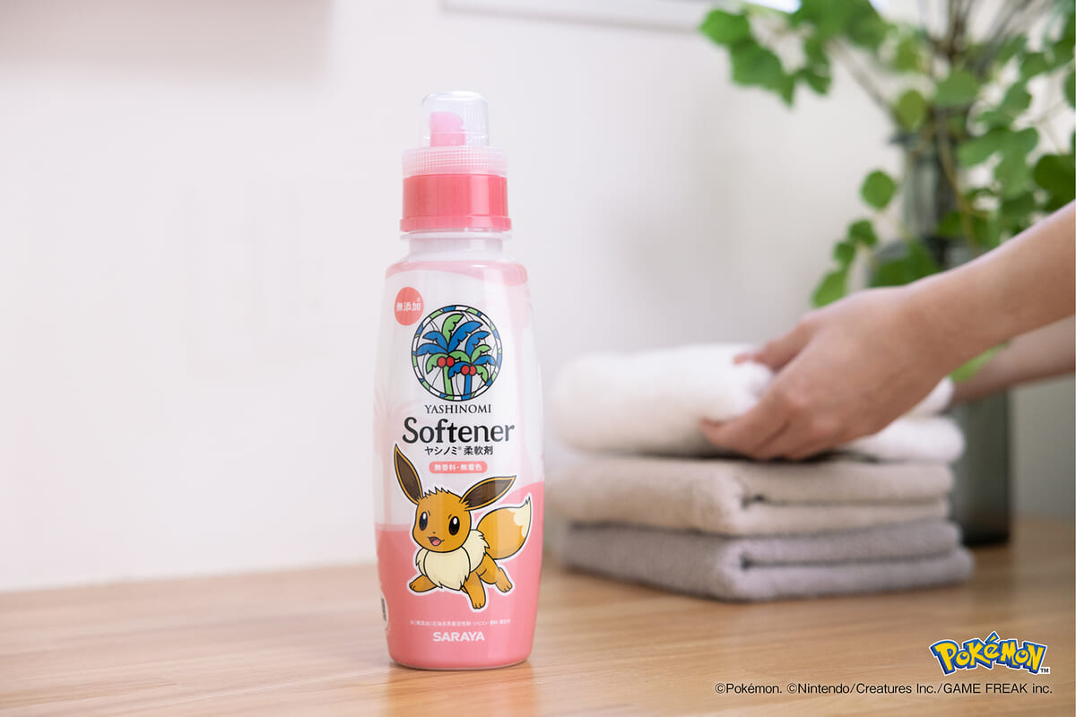 人と場所を選ばない特徴から、「ヤシノミ柔軟剤」にはイーブイが描かれています!