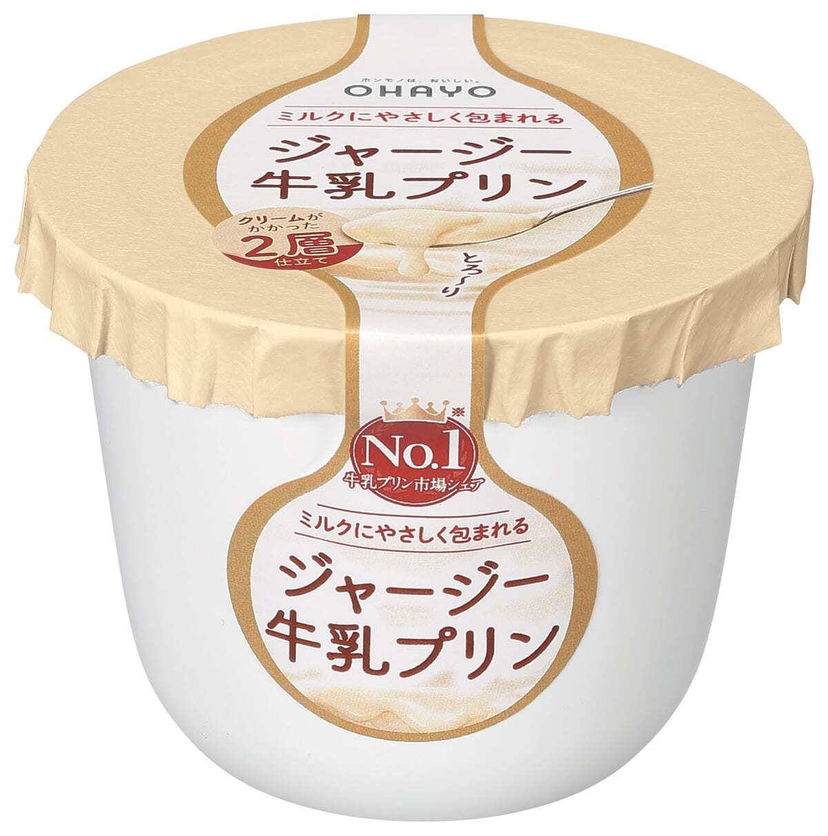 濃厚でコクのあるジャージー乳を贅沢に使用したミルクプリンに、とろ~りクリームをのせた2層タイプです。