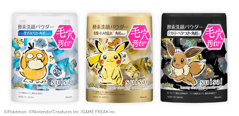 カネボウ化粧品の洗顔専門ブランド「suisai beauty clear(スイサイ ビューティクリア)」から、“白”・“金”・“黒”3種類のポケモンデザインパッケージが登場。