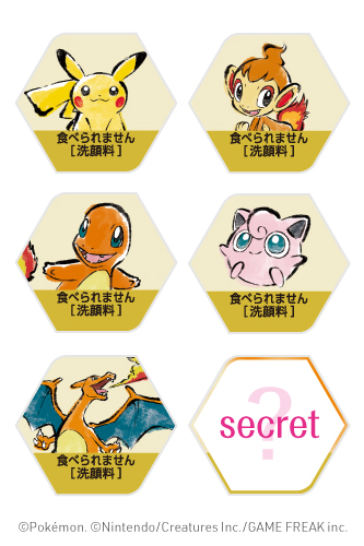 各パッケージにはそれぞれ6種ずつポケモンがデザインされたカプセルをランダムに封入。