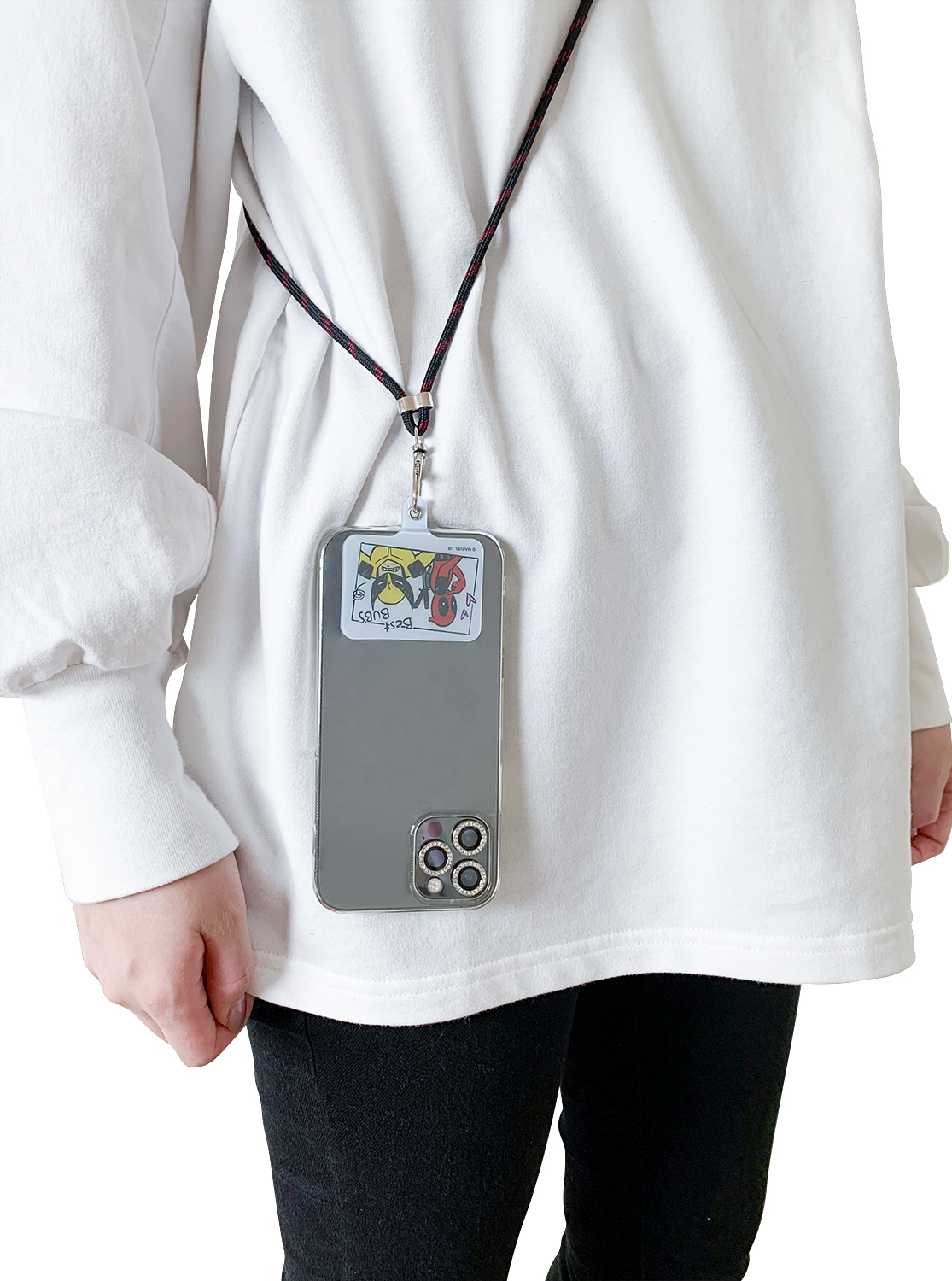 スマホケースに挟んで使える、スマホショルダーストラップ。