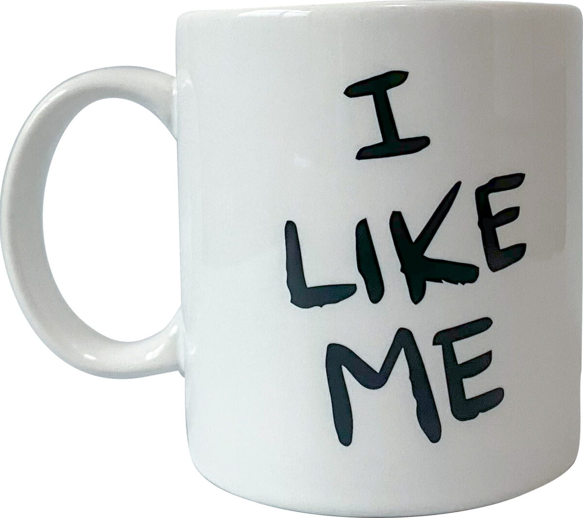白いカップに黒一色で描いたイラストが特徴的で「I LIKE ME」の言葉もポイントです。