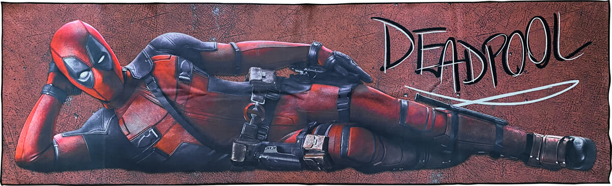 約140センチのビッグサイズなタオルに、寝そべった姿の「デッドプール」をデザイン。