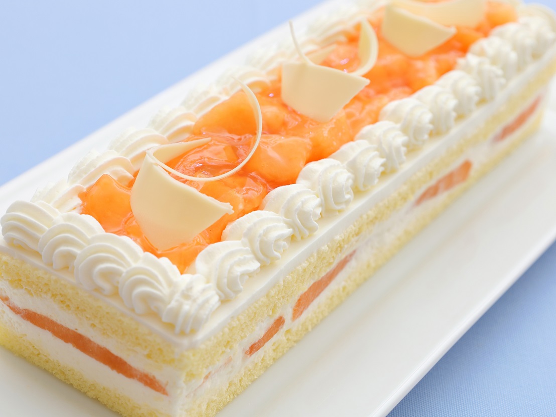 「富良野メロンショートケーキ」は、甘さを控えめにした生クリームが、富良野メロンのしっかりした甘みをより引き立たせる味わい。