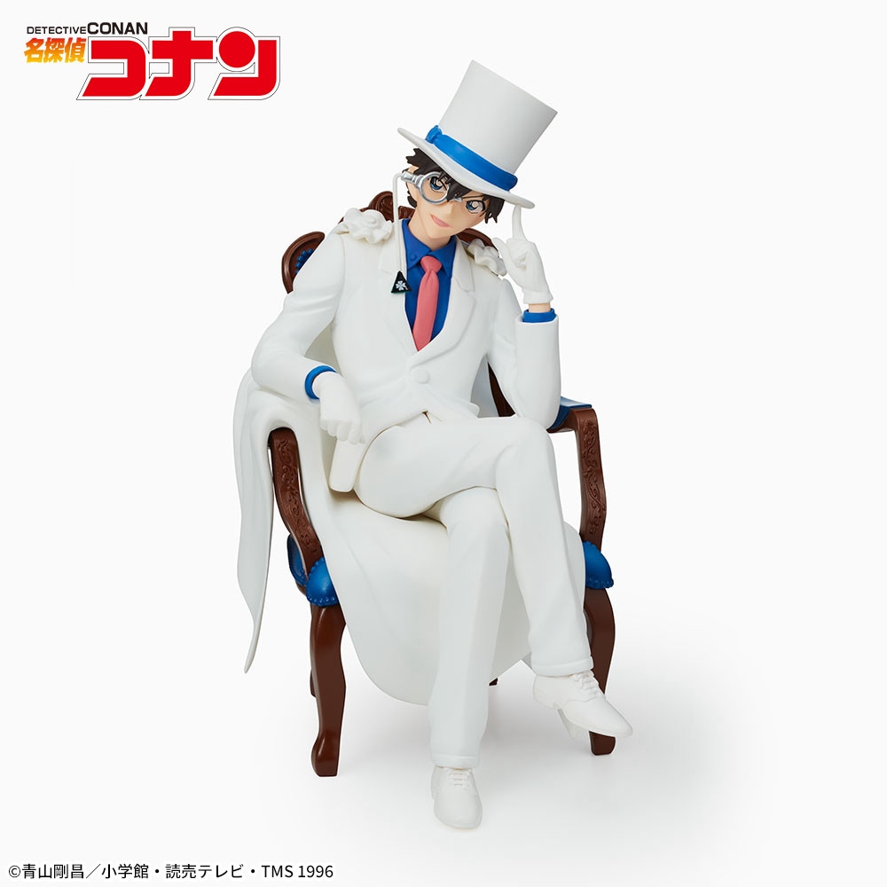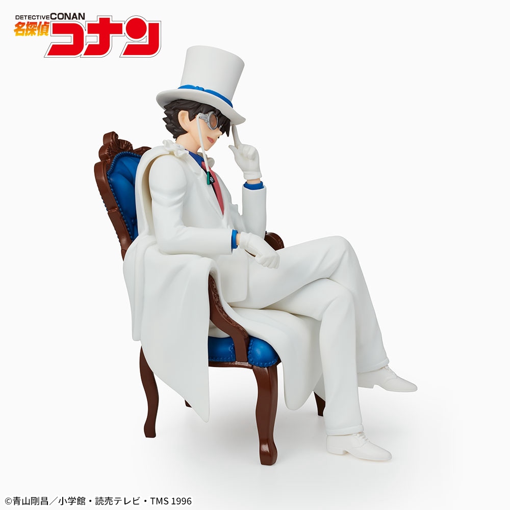 高級感のある椅子に座った「怪盗キッド」を全長約7×14センチで再現したフィギュアです。