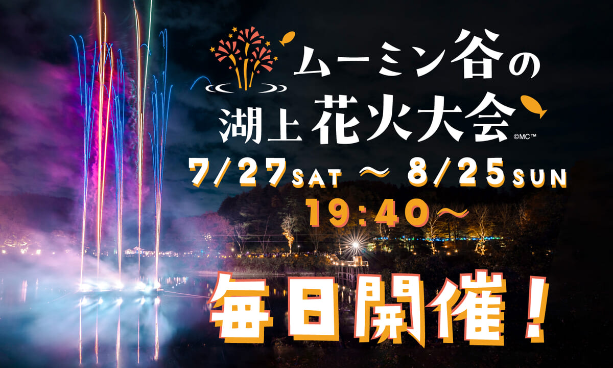 夏の夜に響く『ムーミン谷の湖上花火大会』を、夏休み期間中に毎日開催。