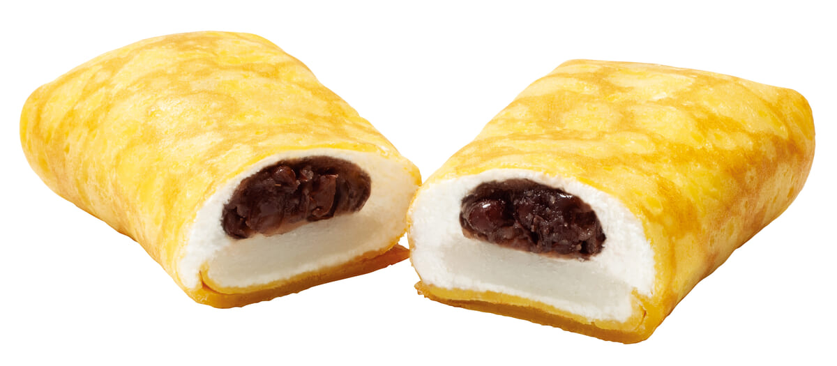 福井県の銘菓である「羽二重餅」と粒あん、ホイップクリームを包んだクレープ。