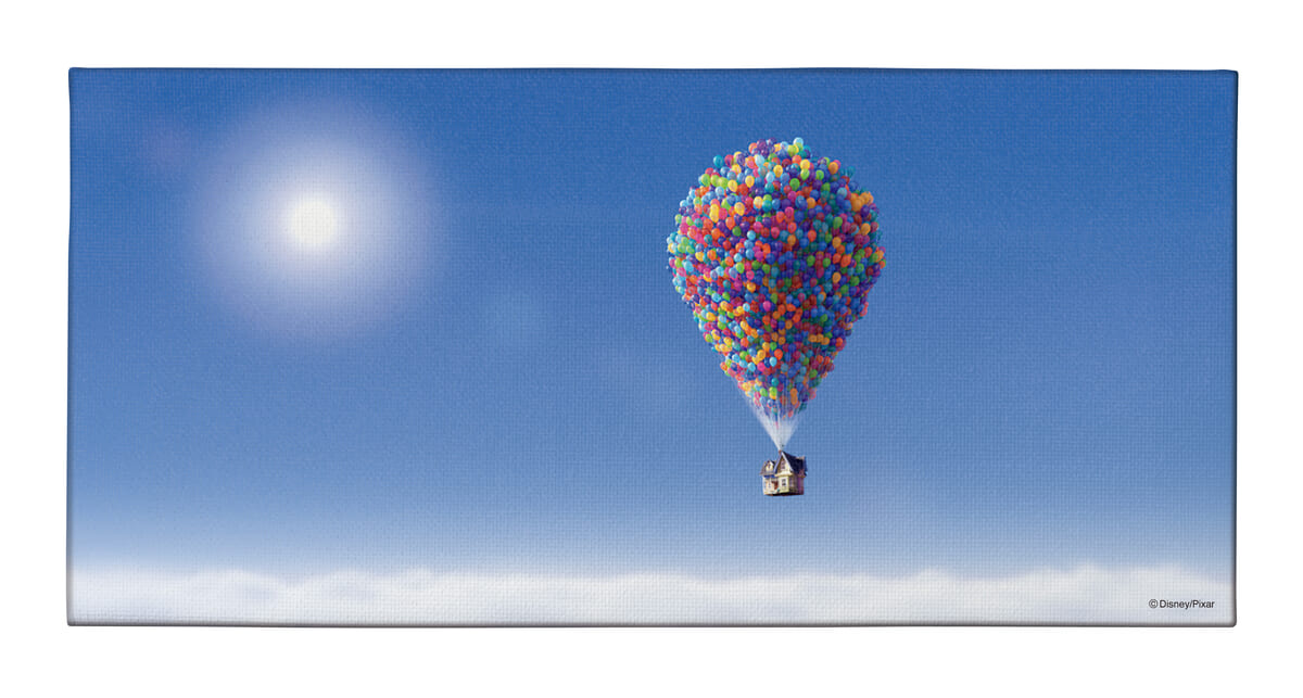 カラフルな風船と共に雲の上を飛ぶシーンを落とし込んだ『カールじいさんの空⾶ぶ家』の全3種類がラインナップされます。