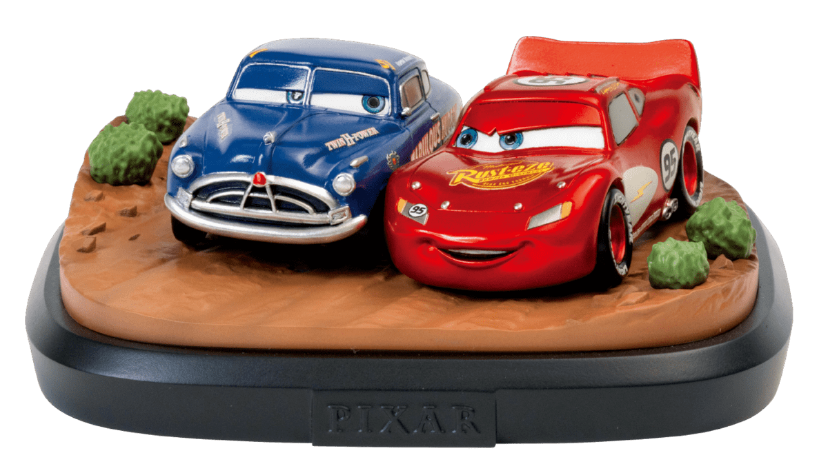 「ライトニング・マックィーン」と「ドック・ハドソン」をデザインした『カーズ』フィギュア。