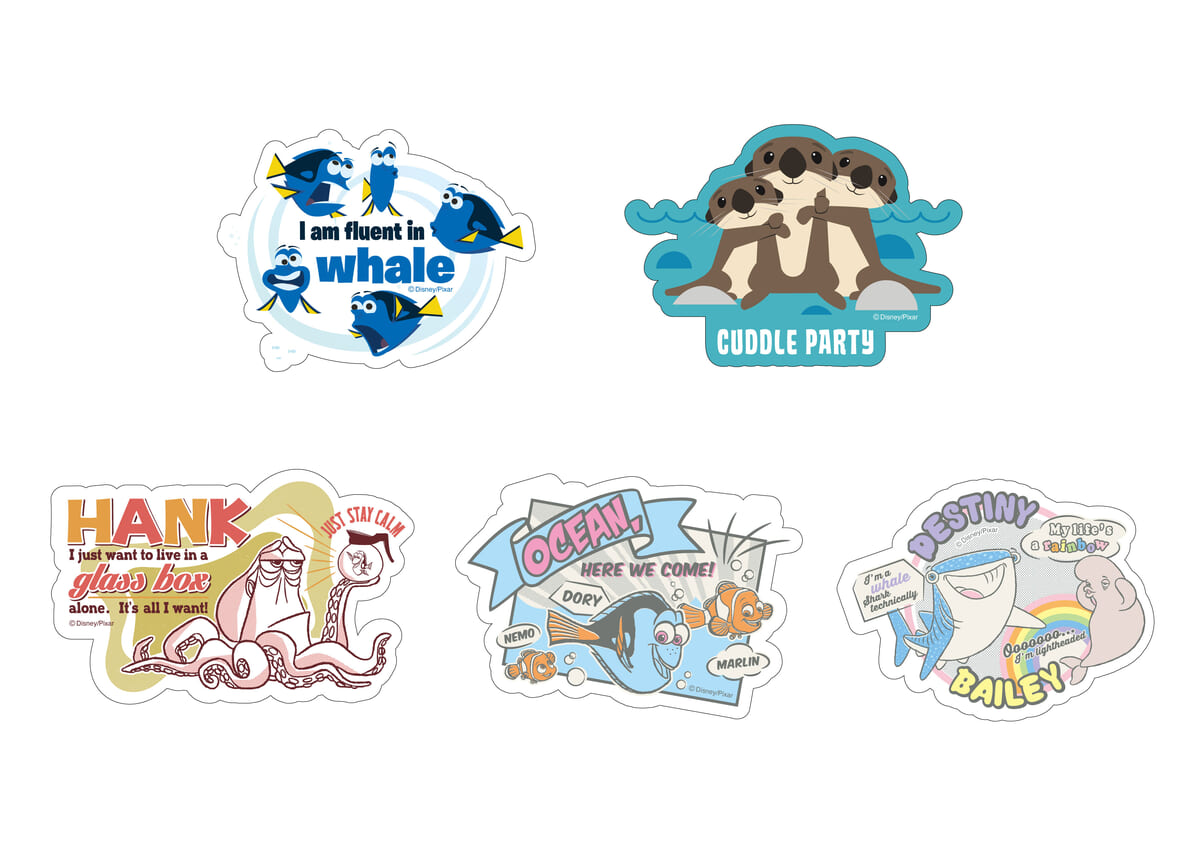 「ニモ」や「マーリン」はもちろん、「ハンク」や「デスティニー」柄も展開される『ファインディング・ドリー』デザイン