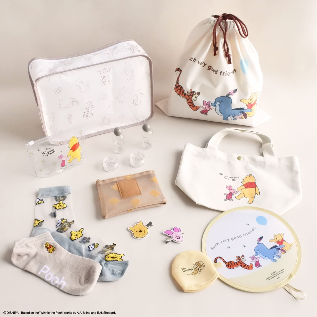 ほのぼのかわいい「くまのプーさん」がデザインされた、旅行やおでかけのおともにぴったりなグッズが盛りだくさん。