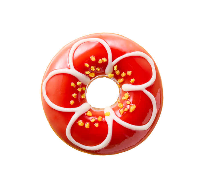 パッションフルーツの果汁やマンゴーピューレ、ハイビスカスフレーバーなど、トロピカルフルーツを使用したナパージュでリングをつつんだ、爽やかなドーナツ。