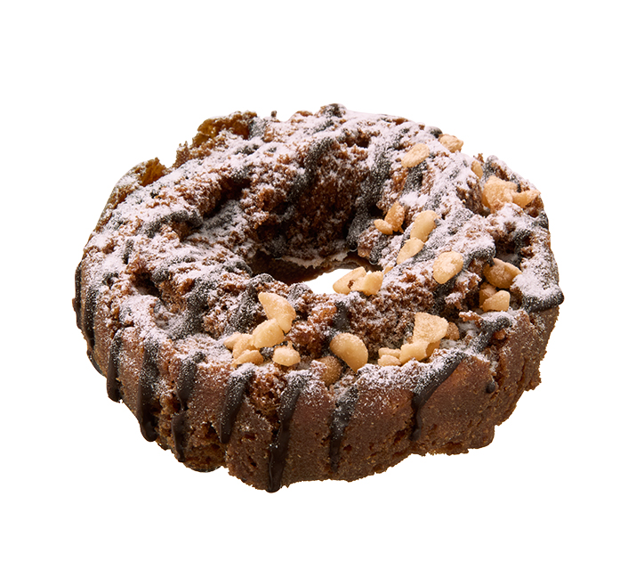 しっとりとしたオールドファッションケーキの生地にマカダミアナッツの粒とペーストを練りこんだ、ナッツの風味を存分に楽しめるドーナツ。