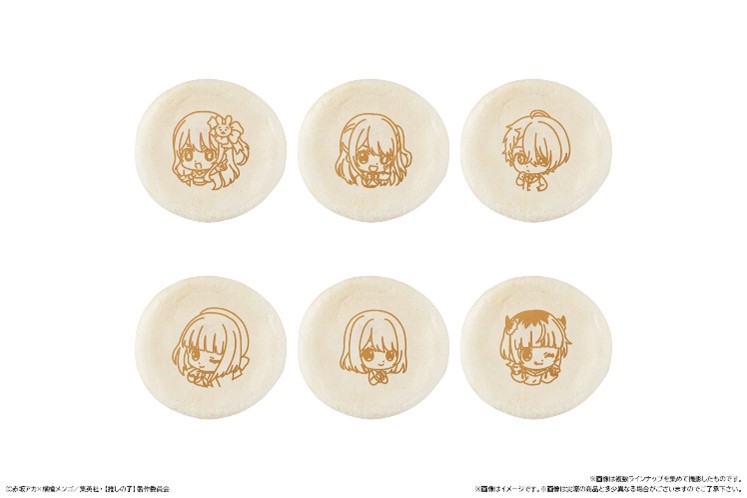 焼き印は「アイ」「アクア」「ルビー」「有馬かな」「黒川あかね」「MEMちょ」の6種類あります。
