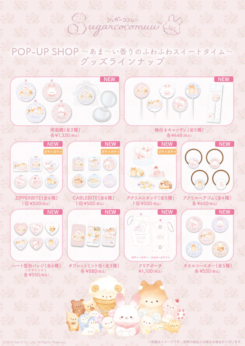 あま~い香りのふわふわスイートタイムがテーマの「シュガーココムー」グッズ。