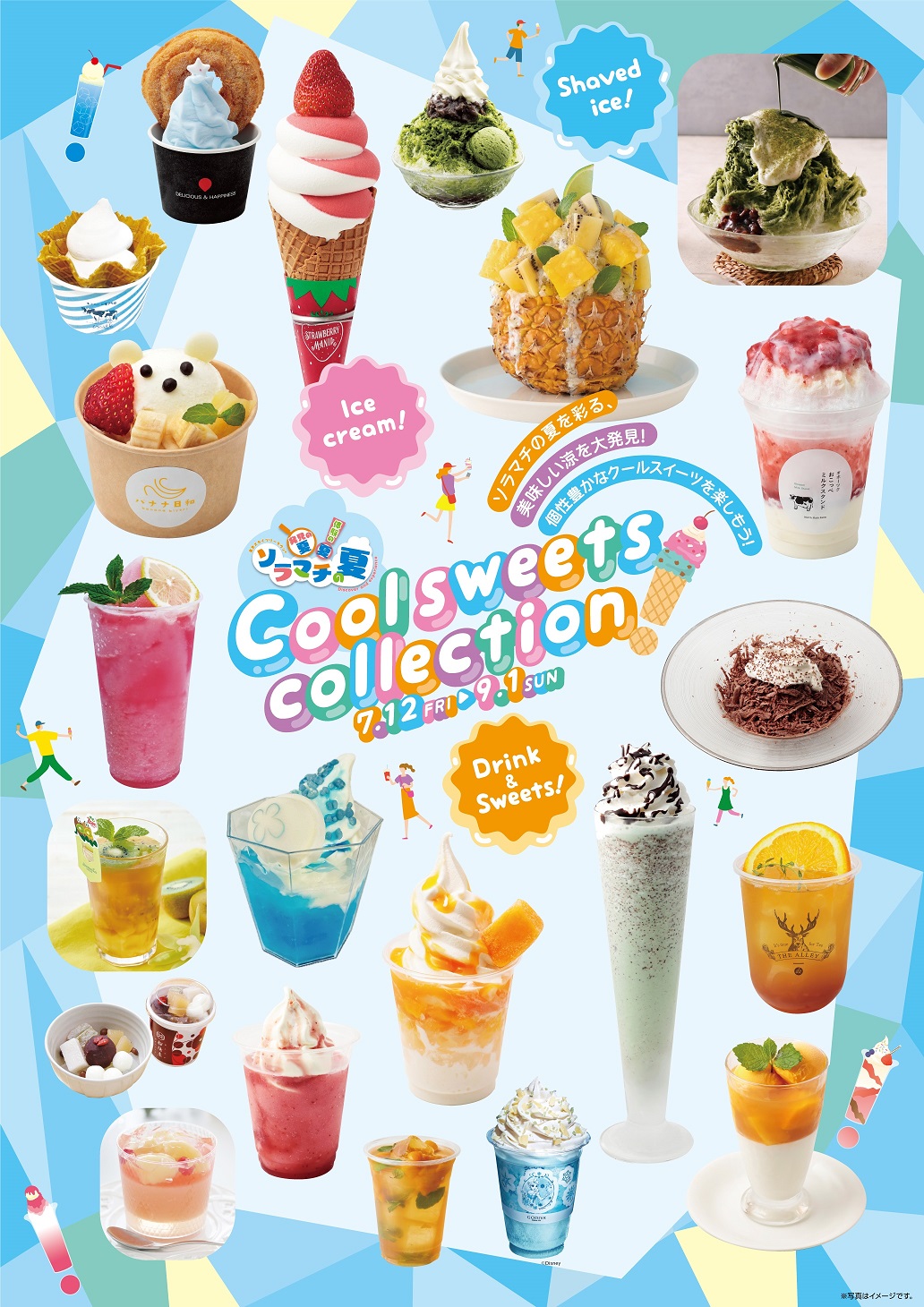 ソラマチの夏を彩る、夏の風物詩かき氷や個性豊かなアイスクリームなどのひんやりスイーツは、全6種類が登場。