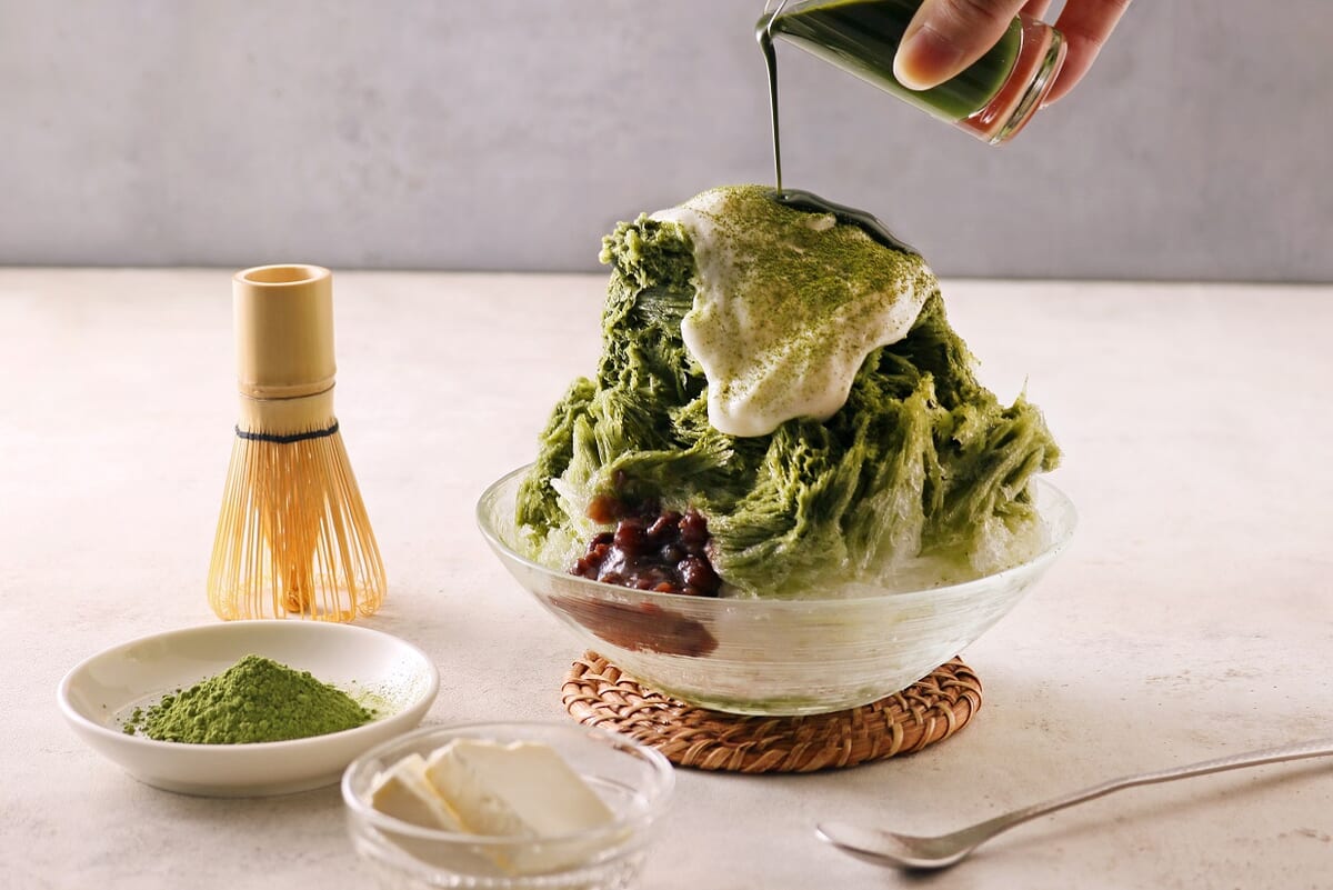 洋と和の美味しさを組み合わた、ココノハの「チーズクリームの抹茶かき氷温かい日本茶付き」