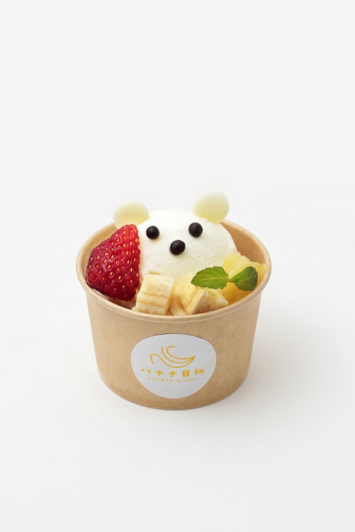 バナナ日和からは、バナナソフトクリームにフローズンヨーグルトを合わせ、いちごやバナナをトッピングして白くま風に仕上げた「白くまバナナパフェ」が登場。