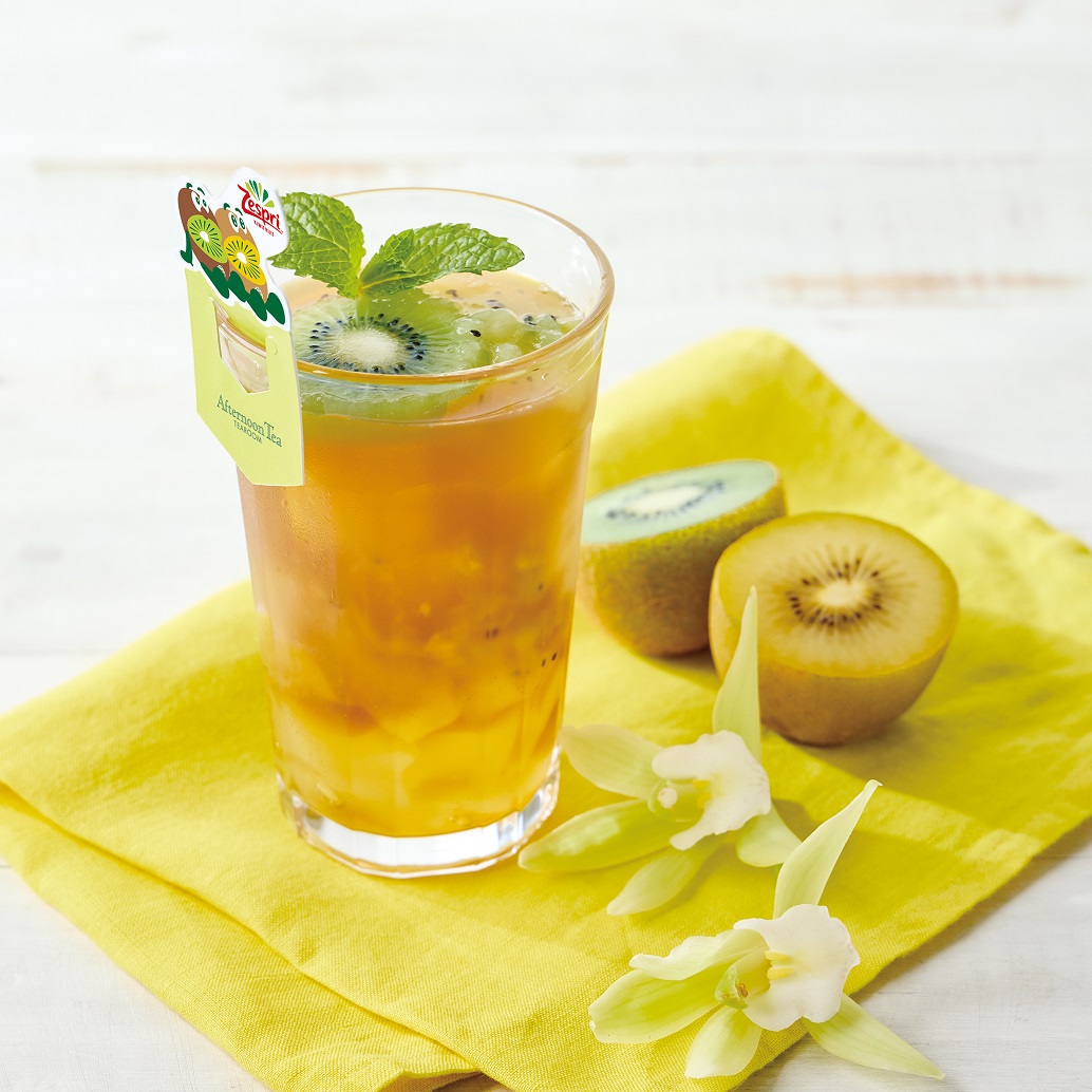 2種類のゼスプリキウイを使った、アフタヌーンティー・ティールームの「ゼスプリキウイとフルーツハーブジュレのアイスティー」