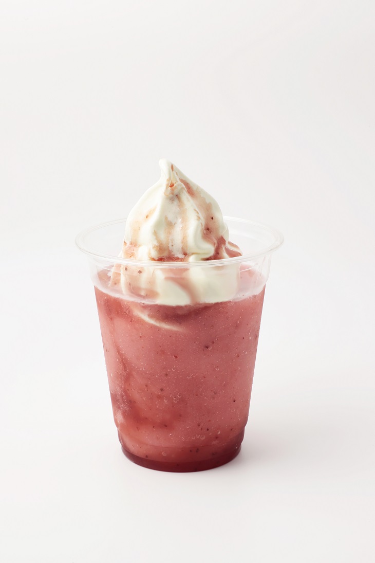 とちおとめソルベを使ったスムージーに、栃木の牧場ソフトをトッピングした、とちまるショップの「とちおとめスムージーフロート」