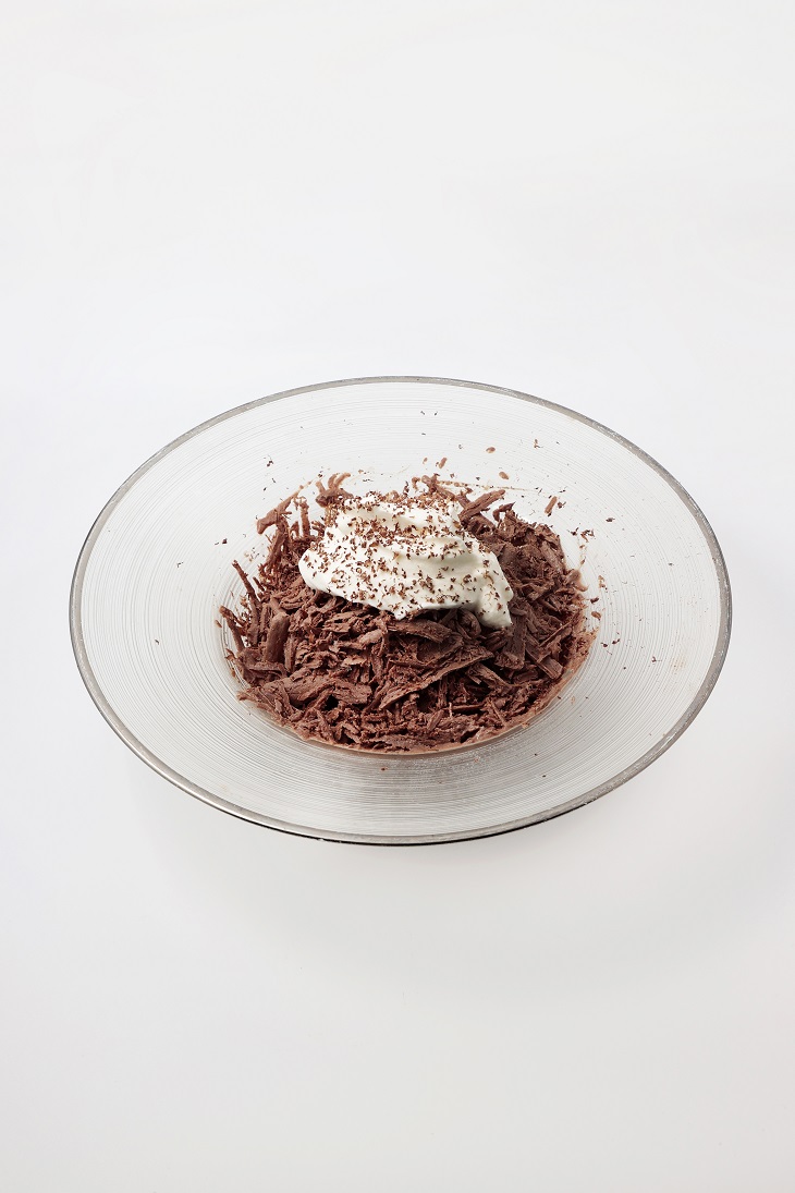 ビターチョコレートとミルクを合わせて凍らせ、 「チョコレートの氷」を削った、RIGOLETTO ROTISSERIE AND WINEの「クラシック・ショコラシェイブ」
