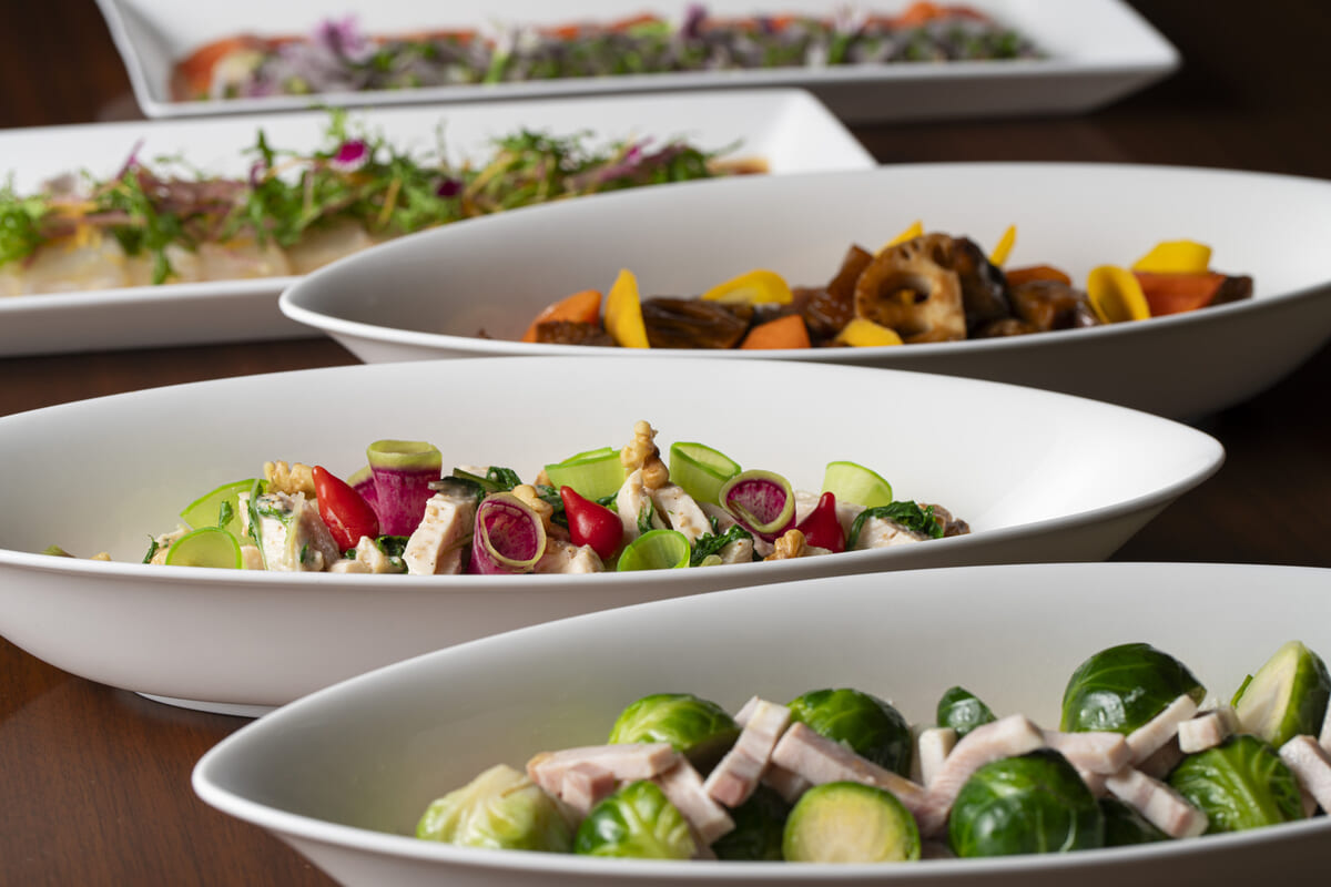 冷製オードブル、温製料理、チーズ、デザートなど