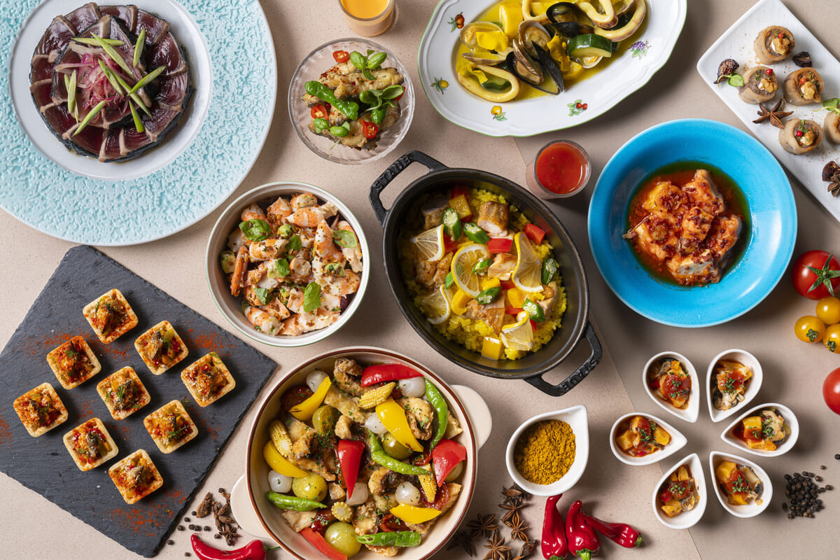 暑い夏にぴったりのスパイシーな料理をはじめ、冷製オードブル、温製料理、チーズ、生ハム、スイーツなど、多種多様な料理が並ぶブッフェラインから好きなものを好きなだけ楽しめます。