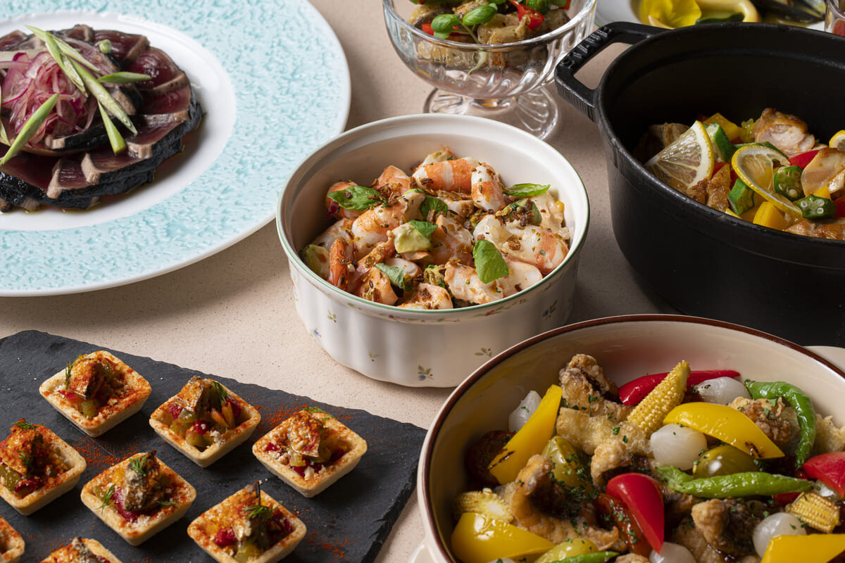 中でも「八角香る鶏の赤ワイン煮込みと八ッ橋」、「メバルのフリット ドライトマトのアグロドルチェ」は料理長のおすすめ料理です。