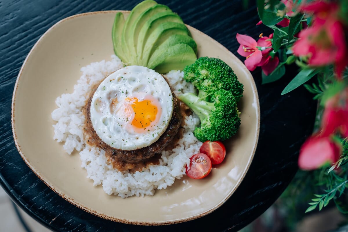 みんな大好きなロコモコ丼は、ジューシーなハンバーグと特製ソースが食欲をそそるメニュー。