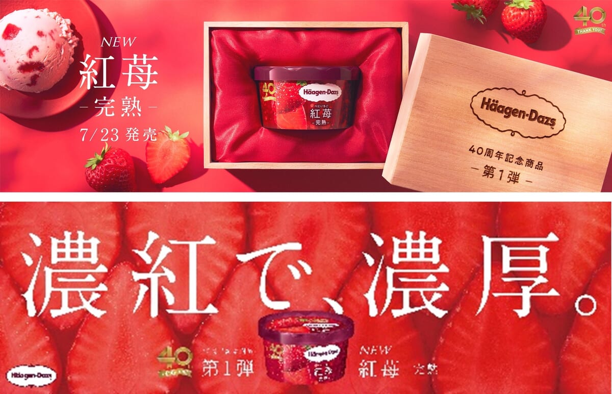 ハーゲンダッツ ジャパンが2024年で創業40周年を迎えることを記念し、これまでの感謝の気持ちを込めてお届けする「40周年記念商品」の第1弾として「紅苺(べにいちご) -完熟-」が登場。
