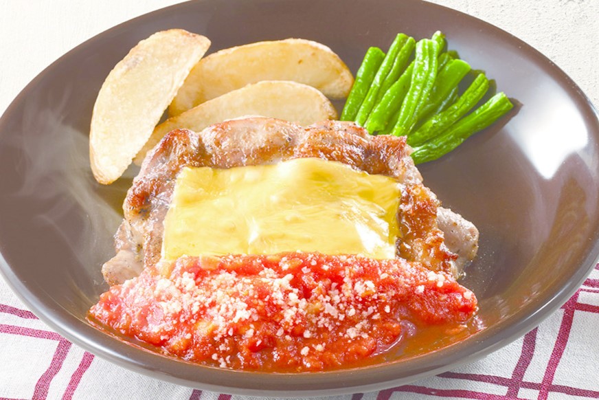 香ばしく焼いた若鶏に甘味と酸味のバランスのよい特製トマトソースが食欲をそそります。