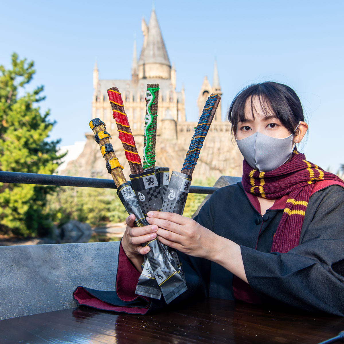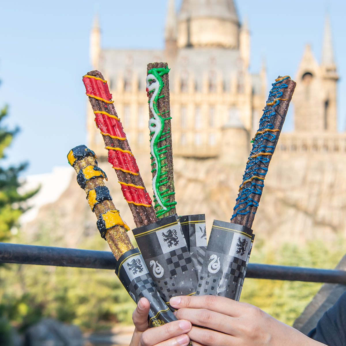好きな寮のチュリトスを手に、魔法界をさらに楽めるスイーツです☆