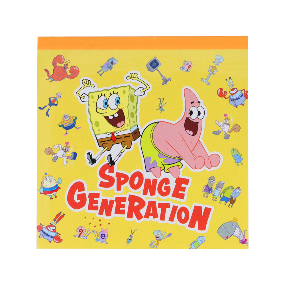 便箋は、仲良しな「スポンジ・ボブ」と「パトリック」の周りに、ビキニタウンに住むキャラクターたちが散りばめられたデザイン。