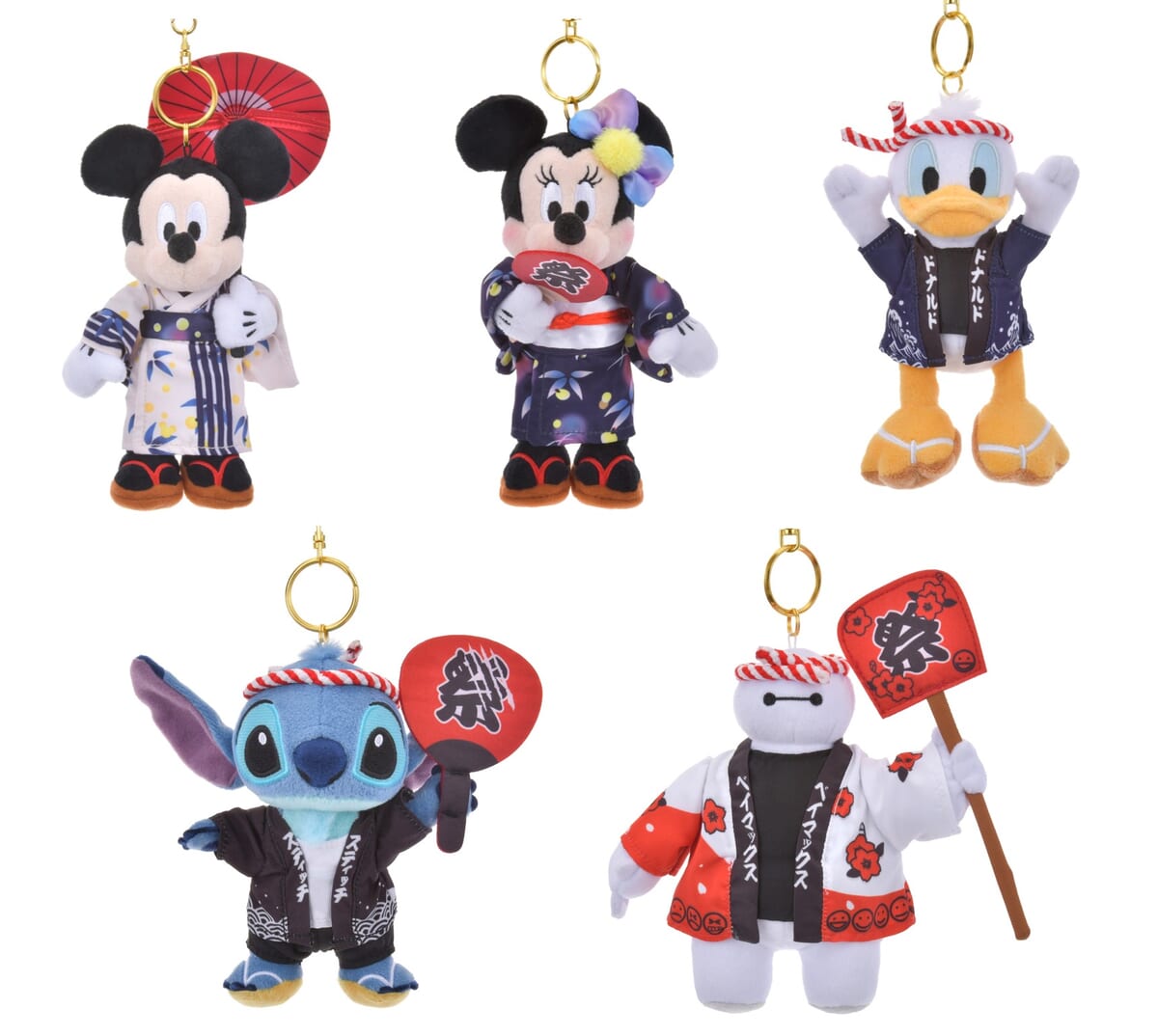 夏祭りシーズンに合わせて、浴衣や法被などのお祭りコスチューム姿のぬいぐるみキーチェーンが登場。