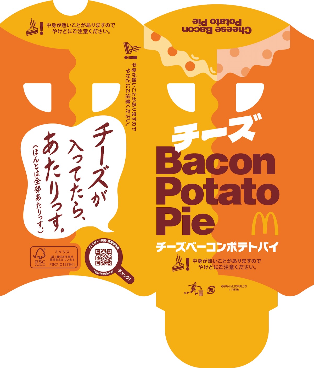 マクドナルドの人気メニュー「ベーコンポテトパイ」に、チーズが入った新商品「チーズベーコンポテトパイ」が期間限定販売。