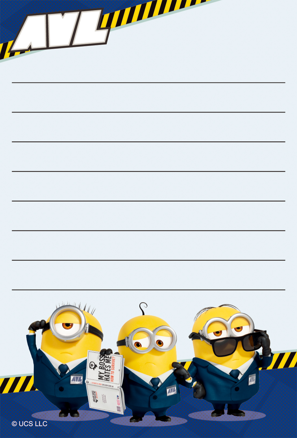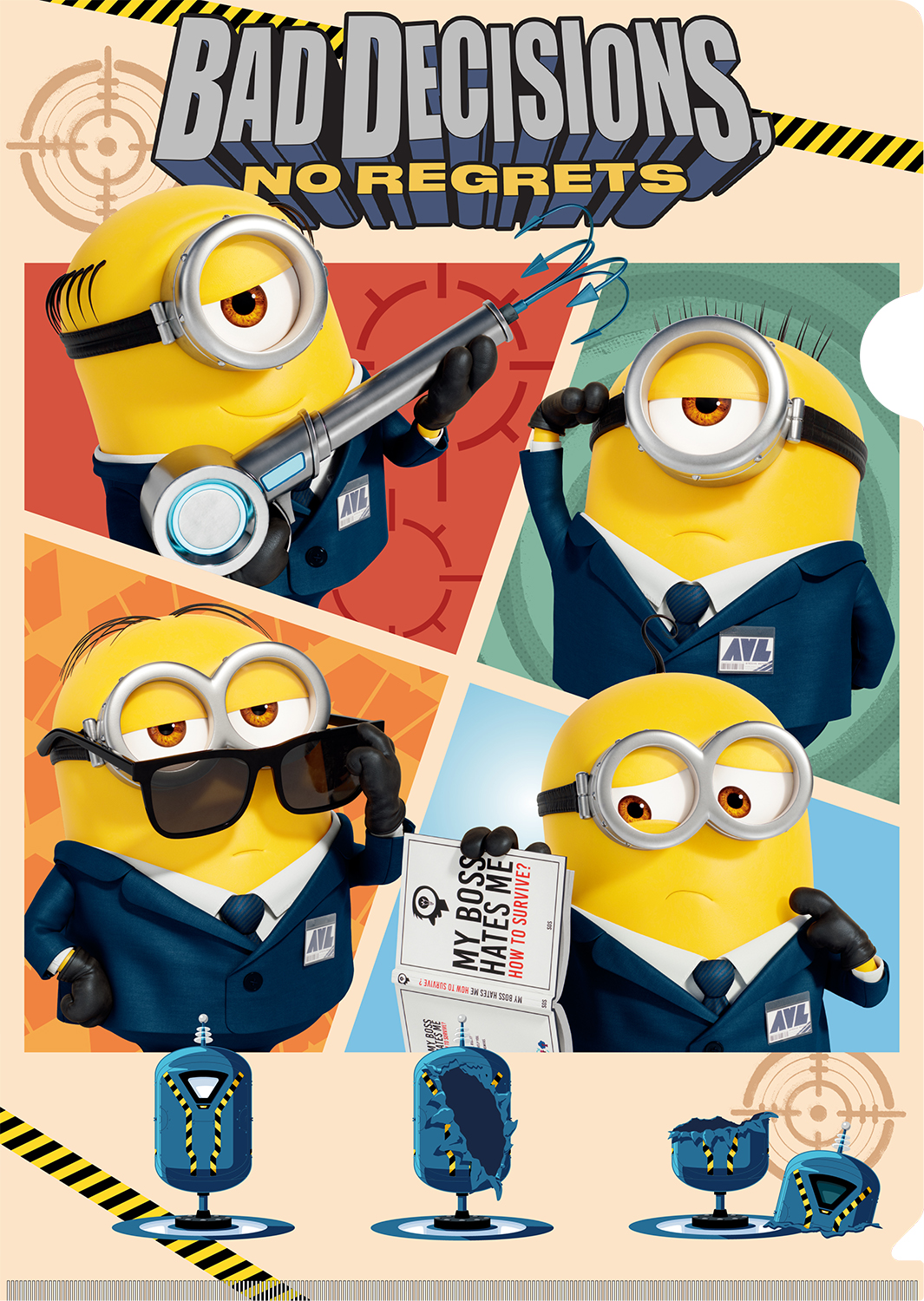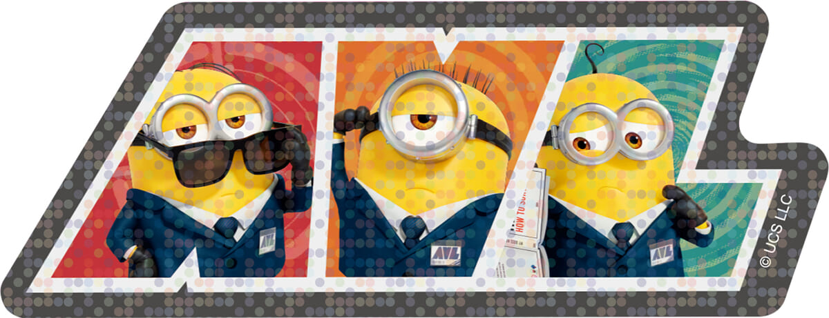 表面には反悪党同盟「AVL」のエージェント風スーツを着た「ミニオン」たちがプリントされています。