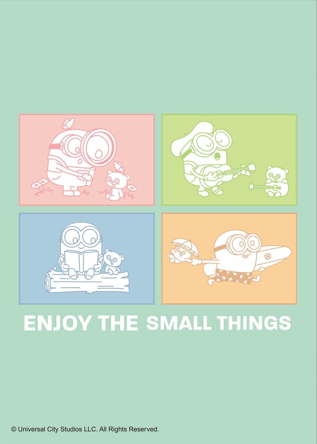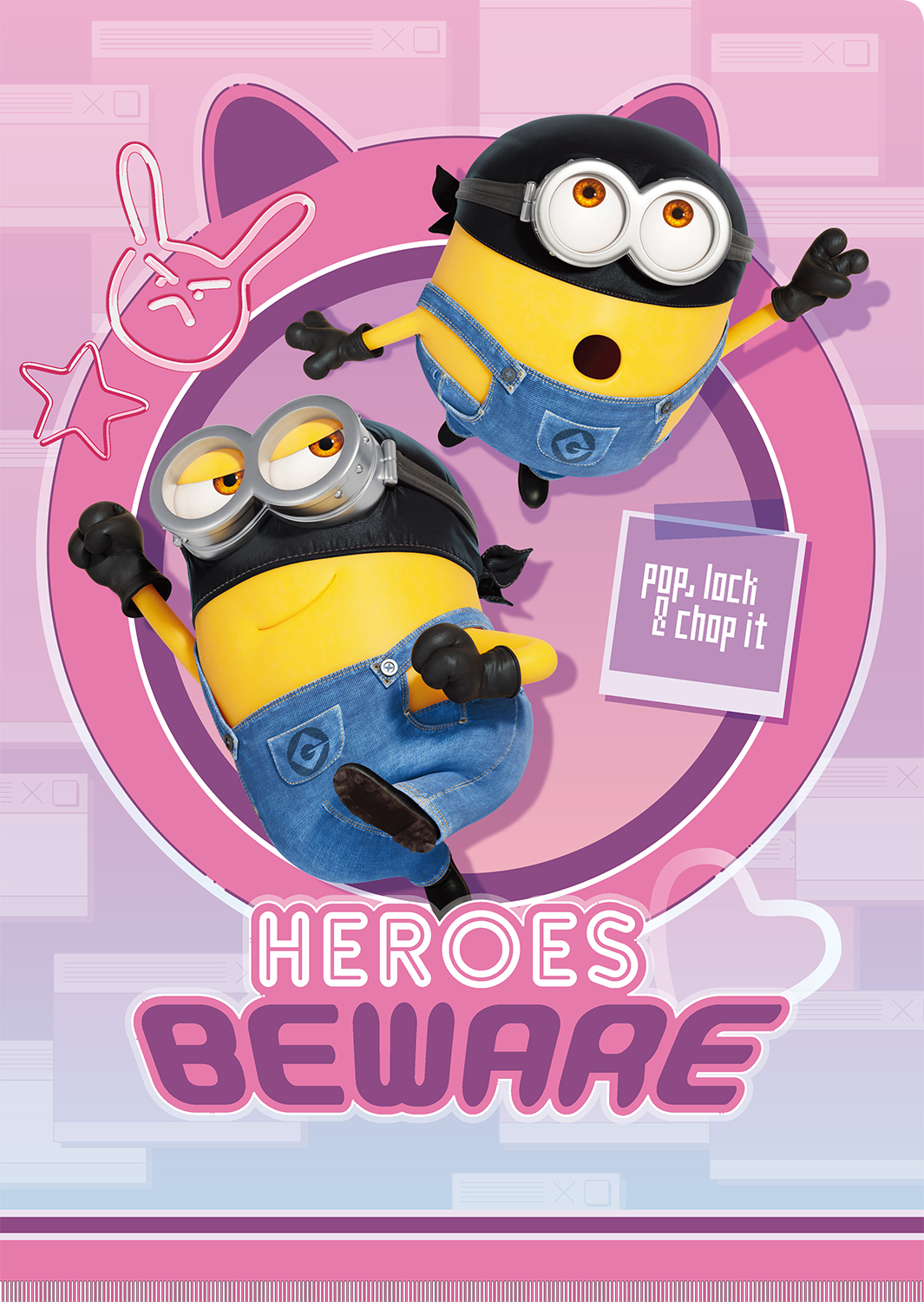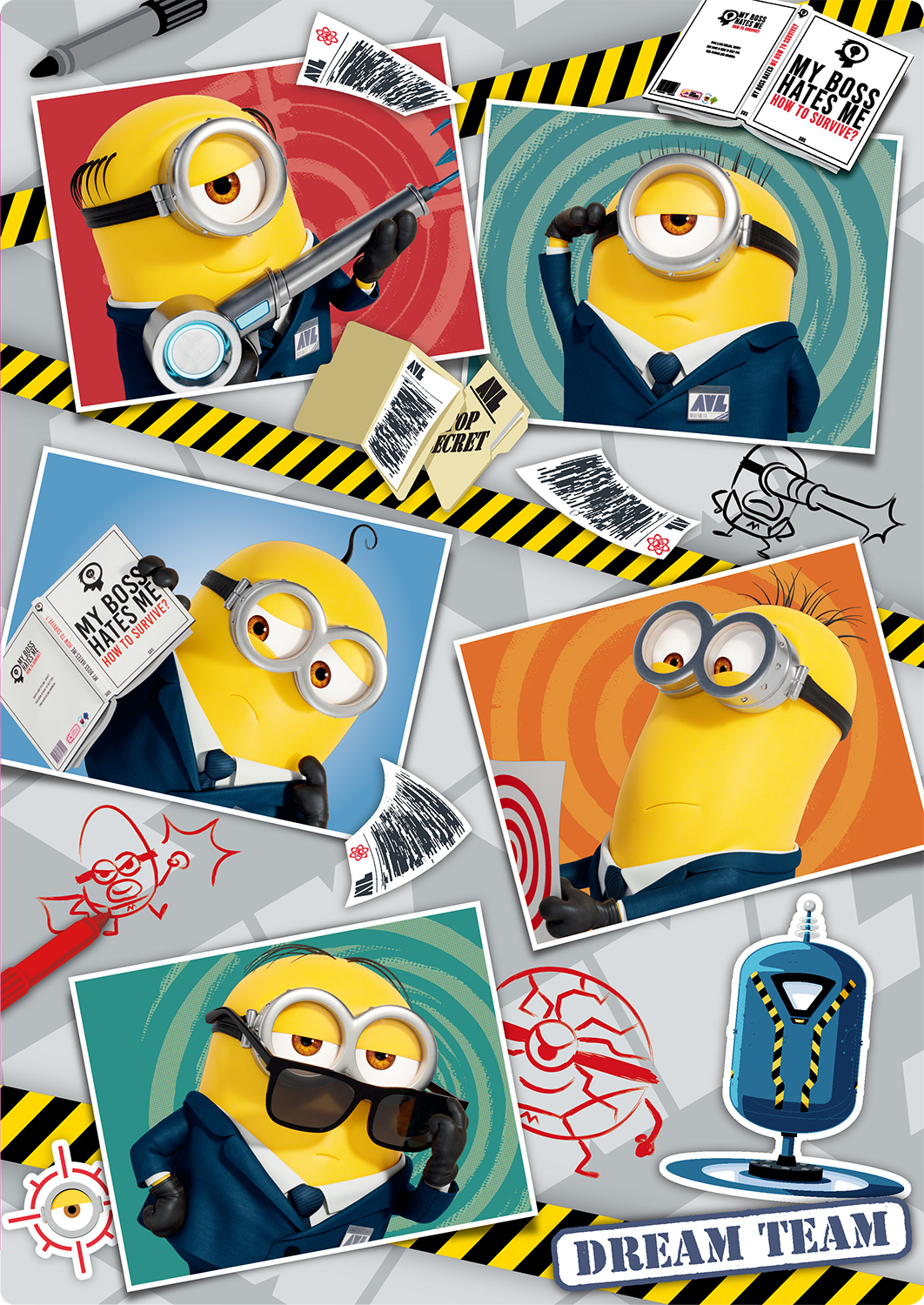 表面には反悪党同盟「AVL」のエージェント風スーツを着た「ミニオン」たちがプリントされています。