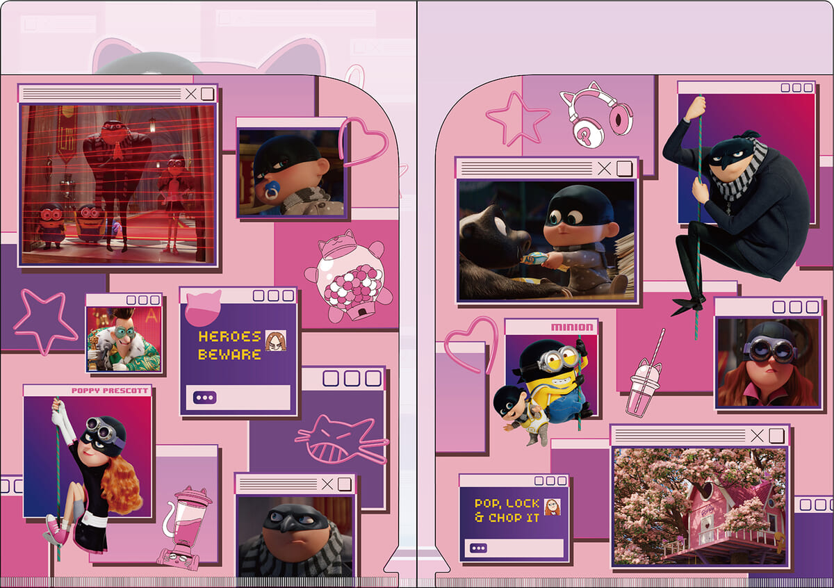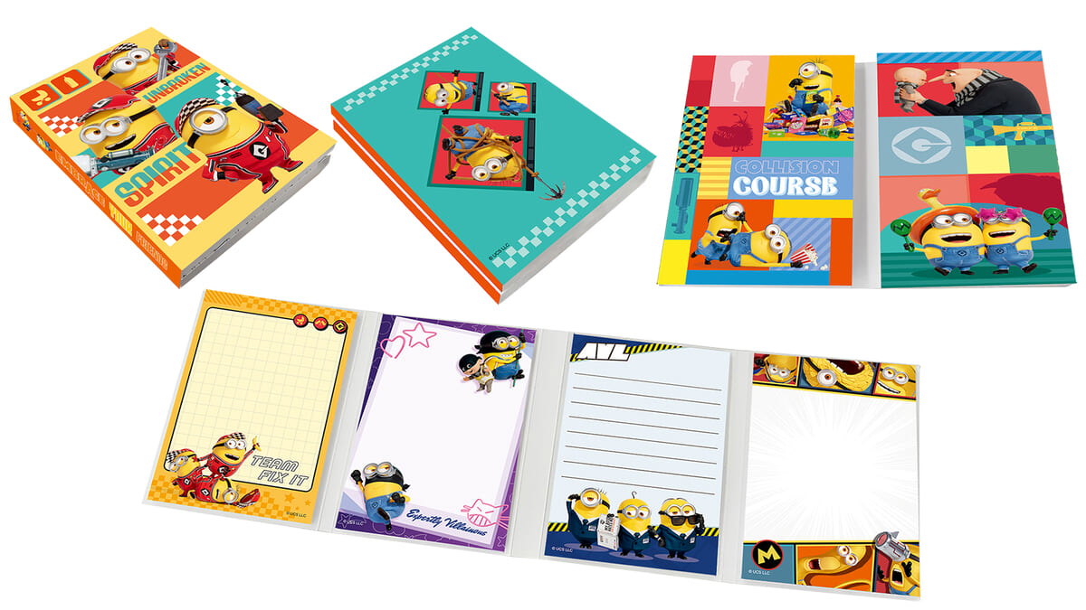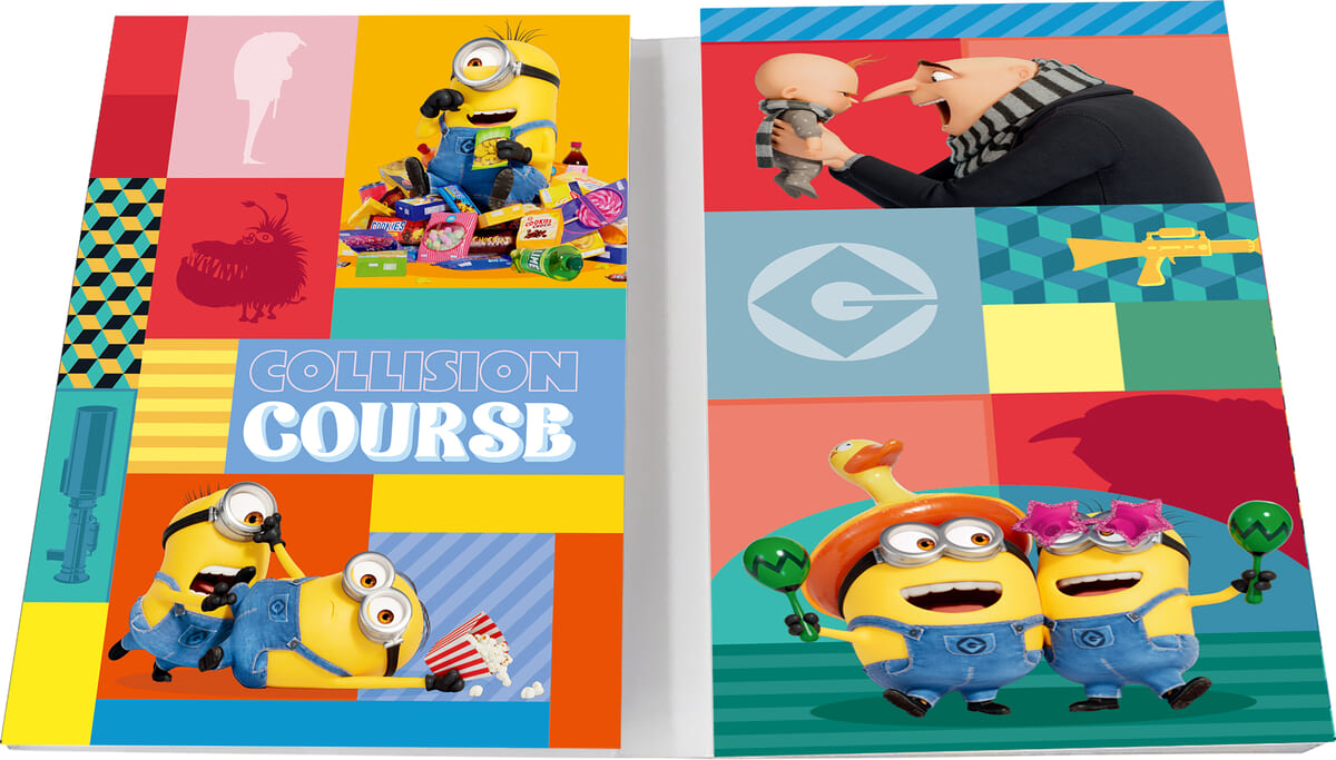 「グルー」や「ミニオン」たちの賑やかアートを使った中綴じ、