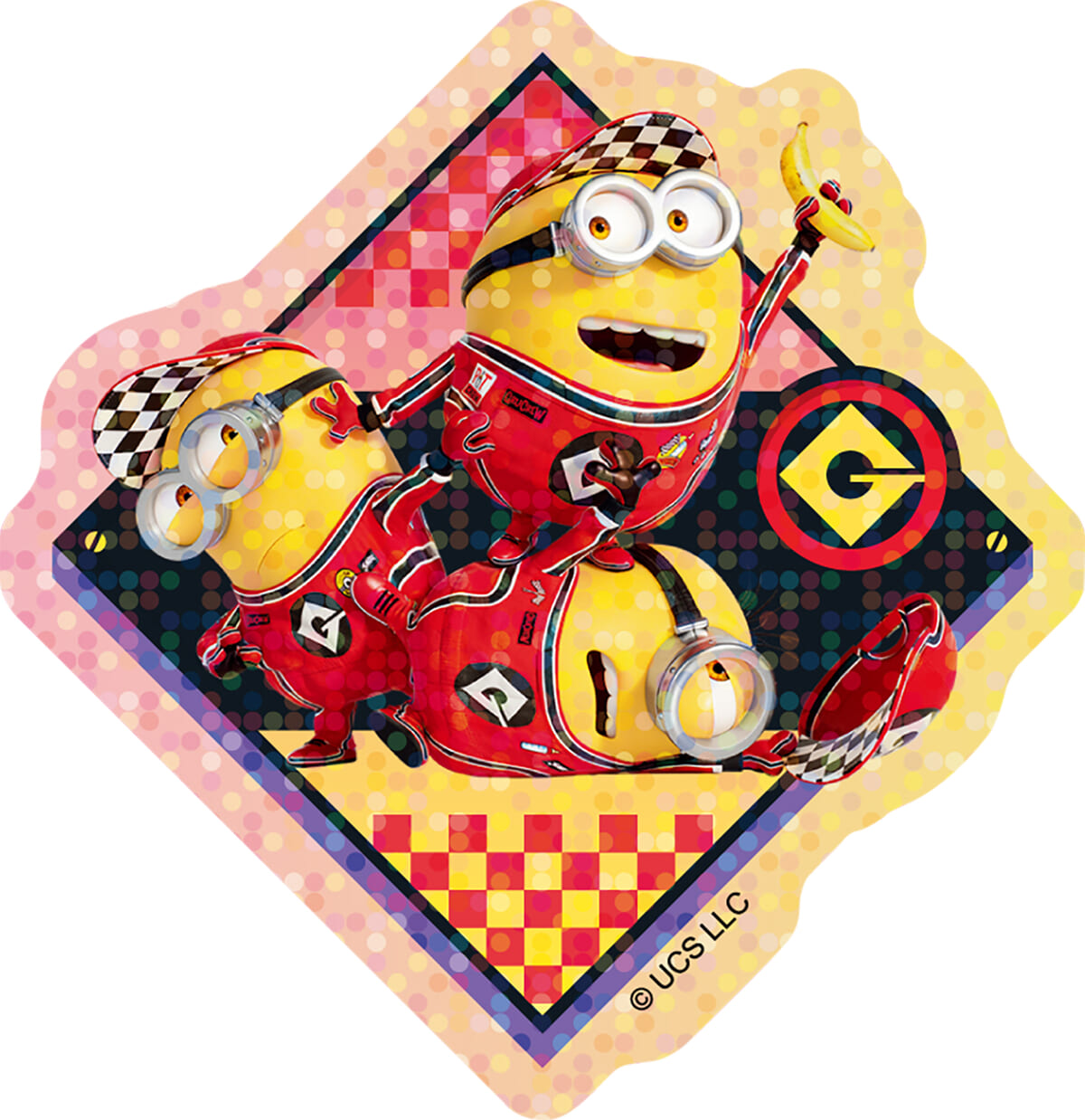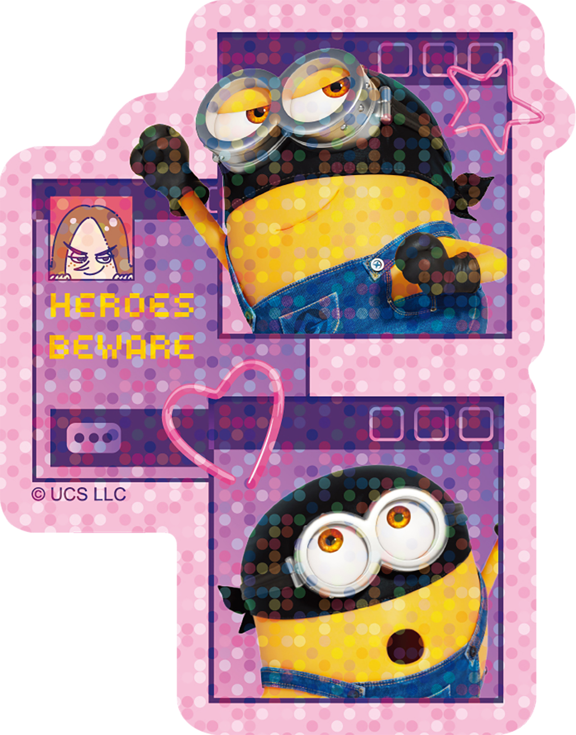 『怪盗グルーのミニオン超変身』のアートが楽しめる、スマートフォンに貼れるサイズのホログラムステッカー。