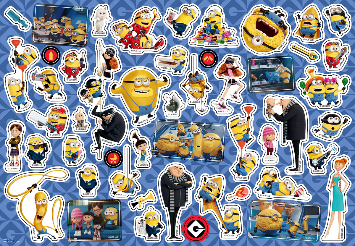 映画『怪盗グルーのミニオン超変身』に登場するキャラクターたちをプリントしたシールあそび。