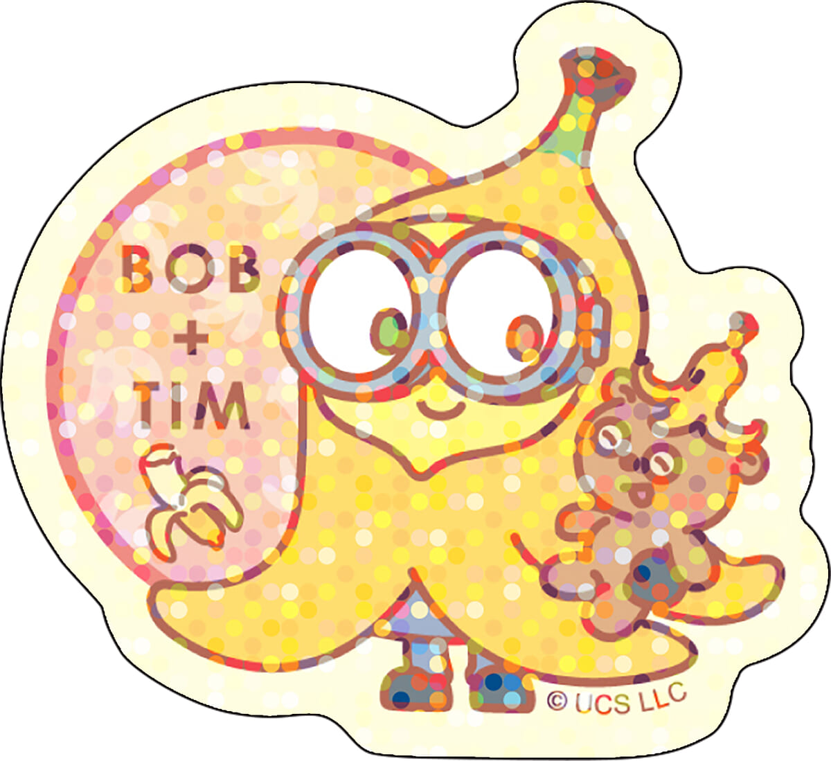 「ボブ」と「ティム」の仲睦まじい姿を描いた、キラキラのホログラムステッカー。