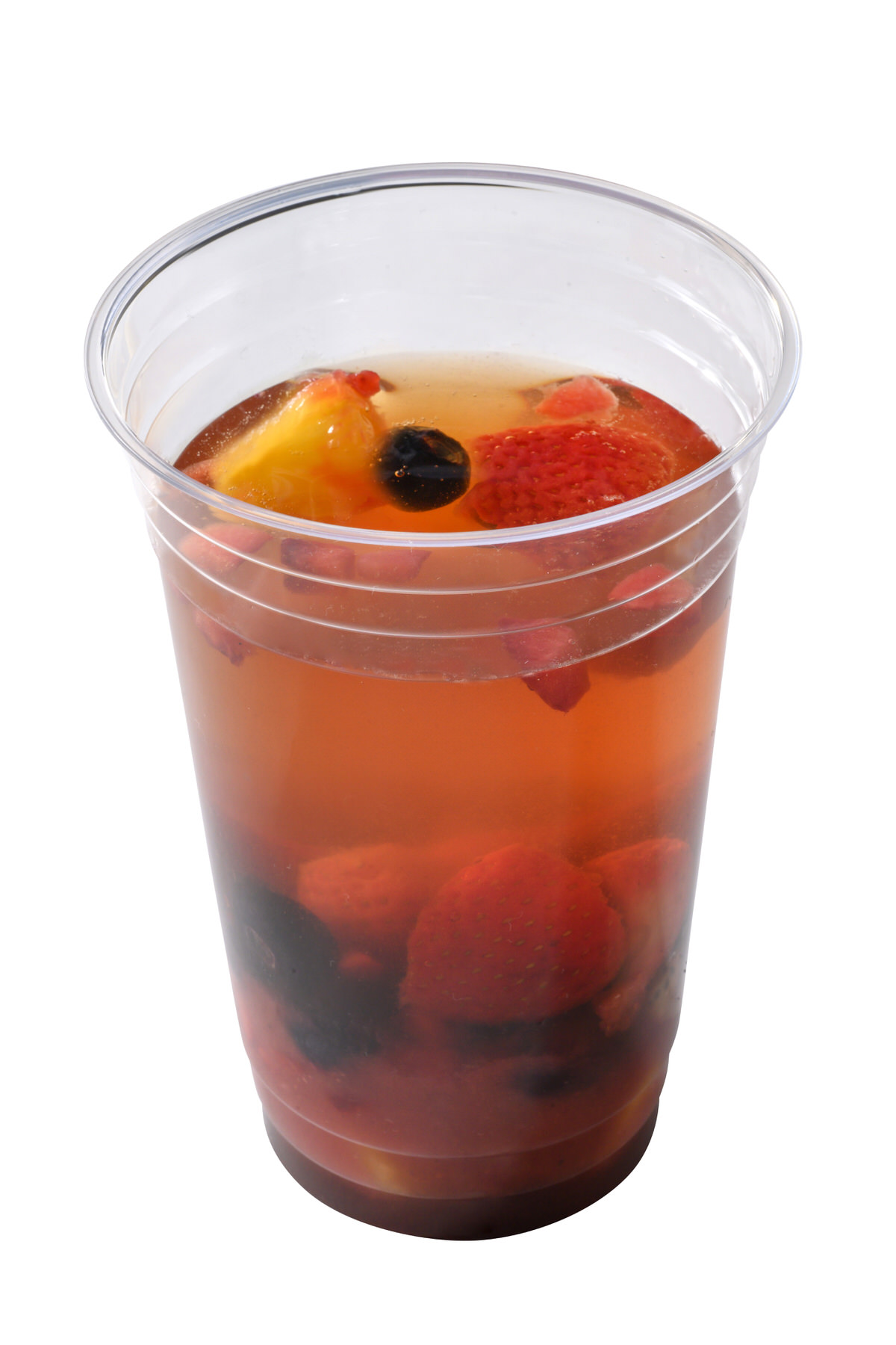 「アイスフルーツティー(ミックスフルーツ)」は、いちごなどのゴロゴロ入った果実がポイントのドリンクです。